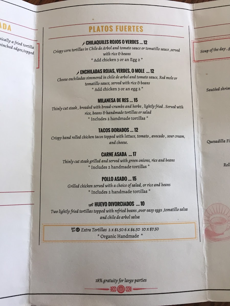 Handmade organic corn tortilla filled with cheese and the filling of your choice (Sour cream, queso fresco and lettuce)